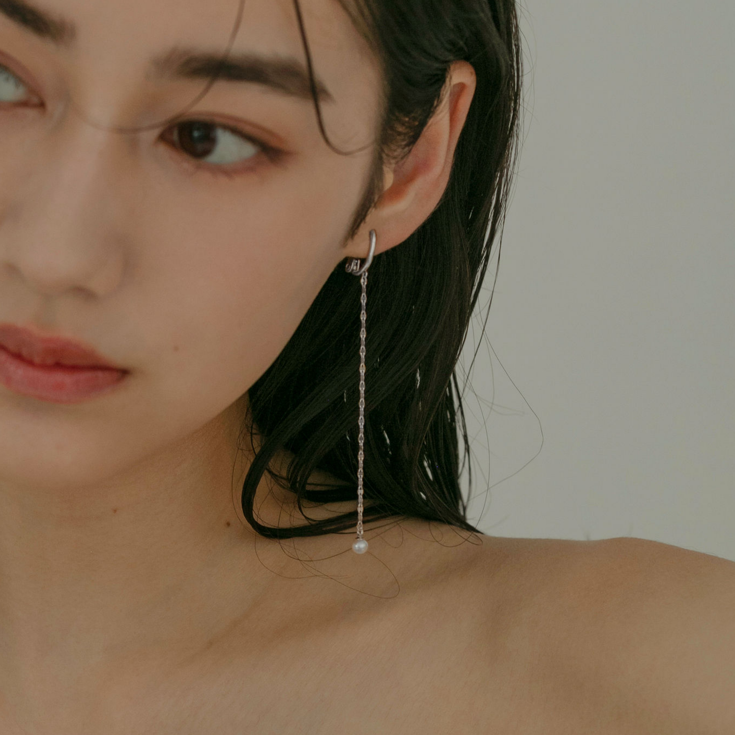 [link] Petite pearl & eclair chain earrings silver
