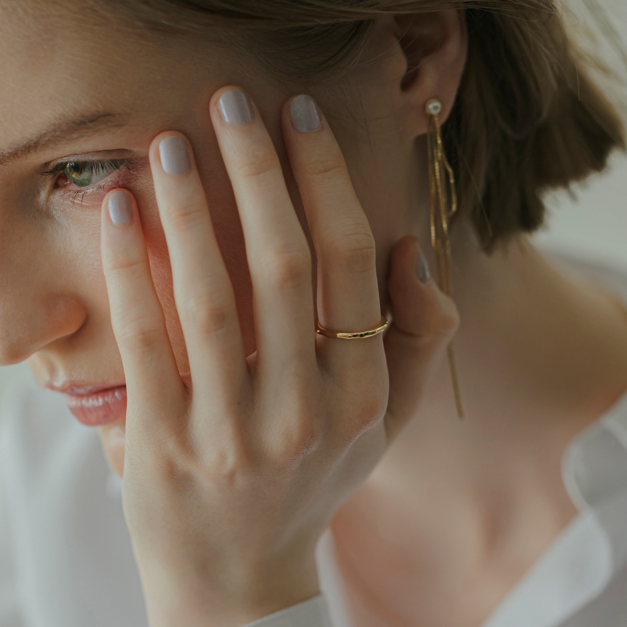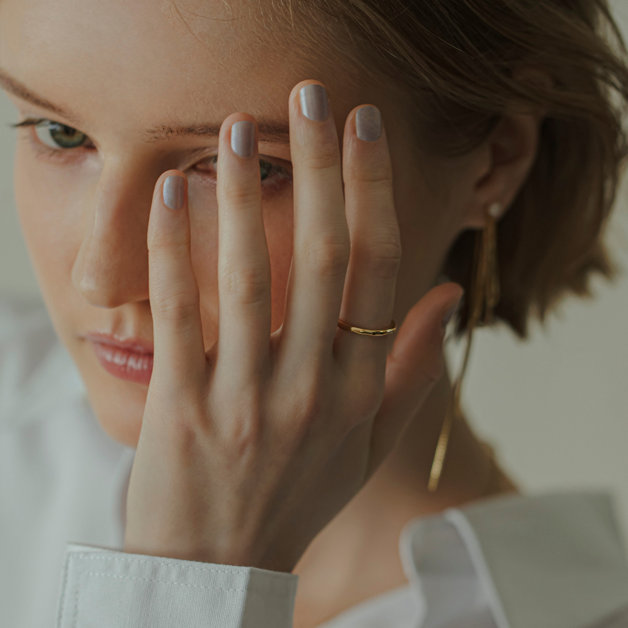 A ring collection for enjoying layered styles to your heart's content. It's fun to create your own favorite style ring by stacking them in the same series, and you can also add a fresh touch by adding them to your usual rings. The hammered craft shines gently like the surface of water.
